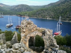 Cruise through the 12 Islands of Gocek Bay… Several swimming breaks at the coves of these islands in the Turquoise Mediterranean Sea. May be the best day of the trip. Overnight in Fethiye. (B)